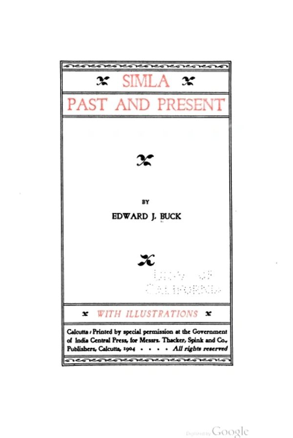 This digitized edition of Simla, Past and Present was sourced from the University of California’s eLibrary.